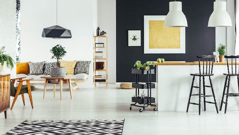 La cocina de concepto abierto está conectada al salón y equipada con electrodomésticos de alta calidad, como placa de vitrocerámica, nevera, microondas, congelador, lavadora, vajilla, cubertería, utensilios de cocina, cafetera, tostadora, hervidor de agua y exprimidor.